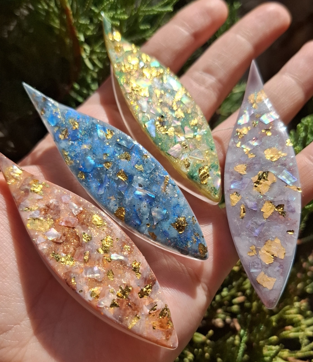 所以在光線不同角度下可以看到亮粉.貝殼.亮片閃閃發光的樣子
